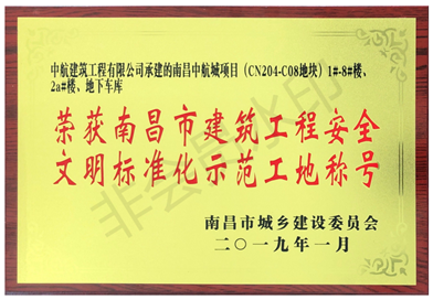 南昌中航城一期項(xiàng)目榮獲南昌市市級(jí)“建筑工程安全文明標(biāo)準(zhǔn)化示范工地”稱號(hào)