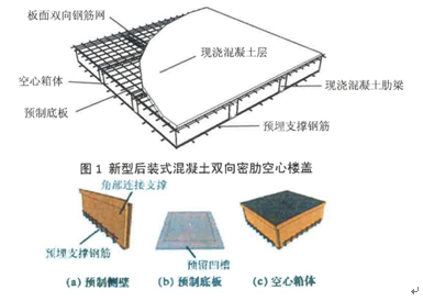 主要有現(xiàn)澆頂板、密肋和空心箱體組成,不僅具有傳統(tǒng)雙向密肋樓蓋和空心樓蓋的優(yōu)點(diǎn),而且省去了制作難、運(yùn)輸難及造價(jià)高的內(nèi)模,材料更省、傳力更明確,具有空心率大、承載力高、整體性及抗裂防滲性能好,施工方便、縮短工期等諸多優(yōu)點(diǎn)。