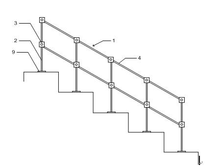通過(guò)對(duì)傳統(tǒng)欄桿進(jìn)行改進(jìn),將縱橫向欄桿通過(guò)調(diào)節(jié)件進(jìn)行位置和角度的連接,可以使欄桿適應(yīng)不同尺寸空間、不同安裝夾角的安裝環(huán)境。