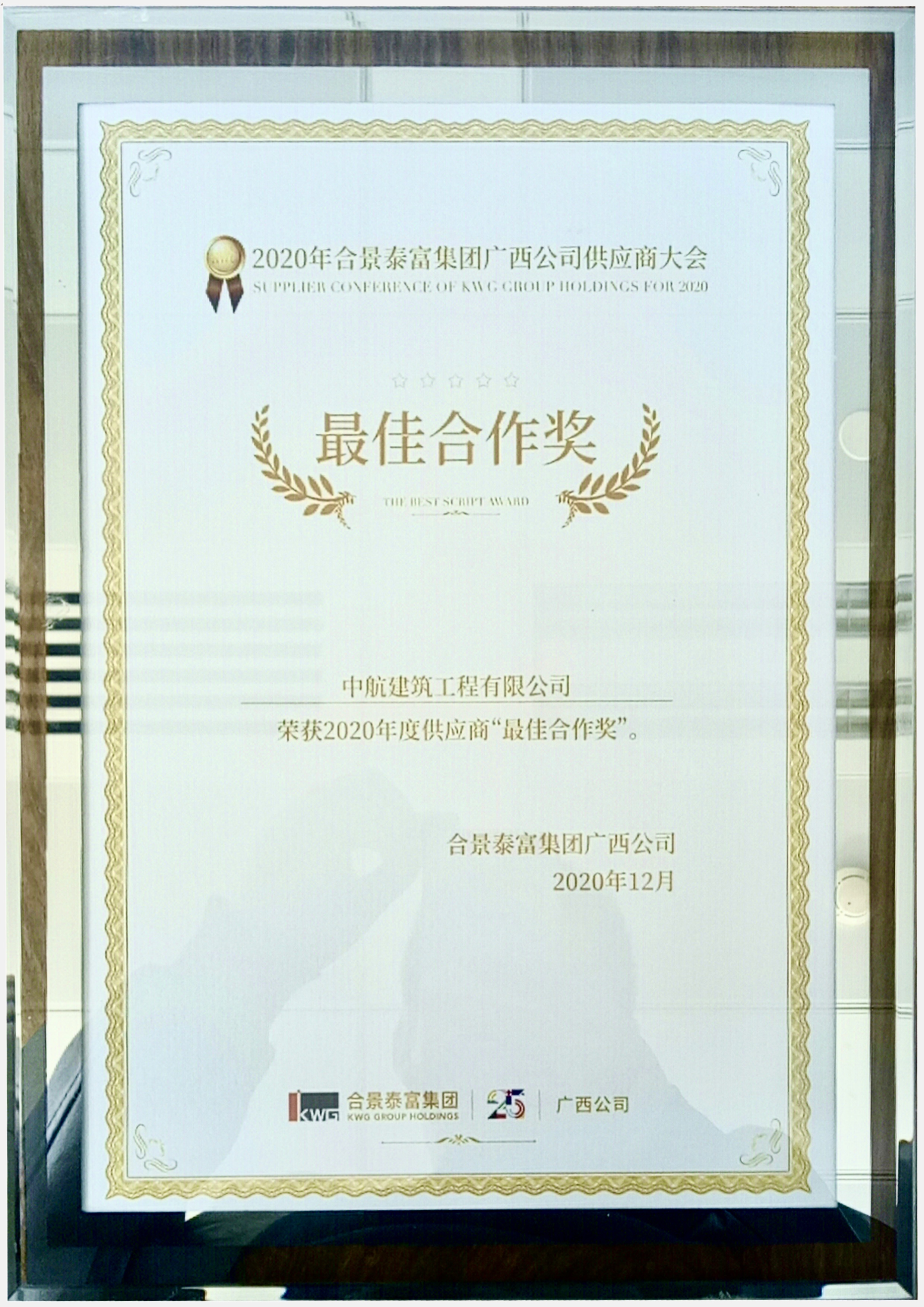 公司榮獲合景泰富集團(tuán)廣西公司2020年度供應(yīng)商“最佳合作獎(jiǎng)”。