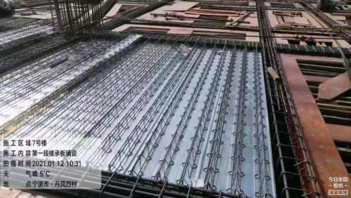 正在施工的寧波兒童公園項(xiàng)目7#棟,采用了新技術(shù)新工藝-多維組合樓板即樓承板施工方案,大大提高了裝配率,這也是華潤寧波公司在民用建筑中的首次應(yīng)用。