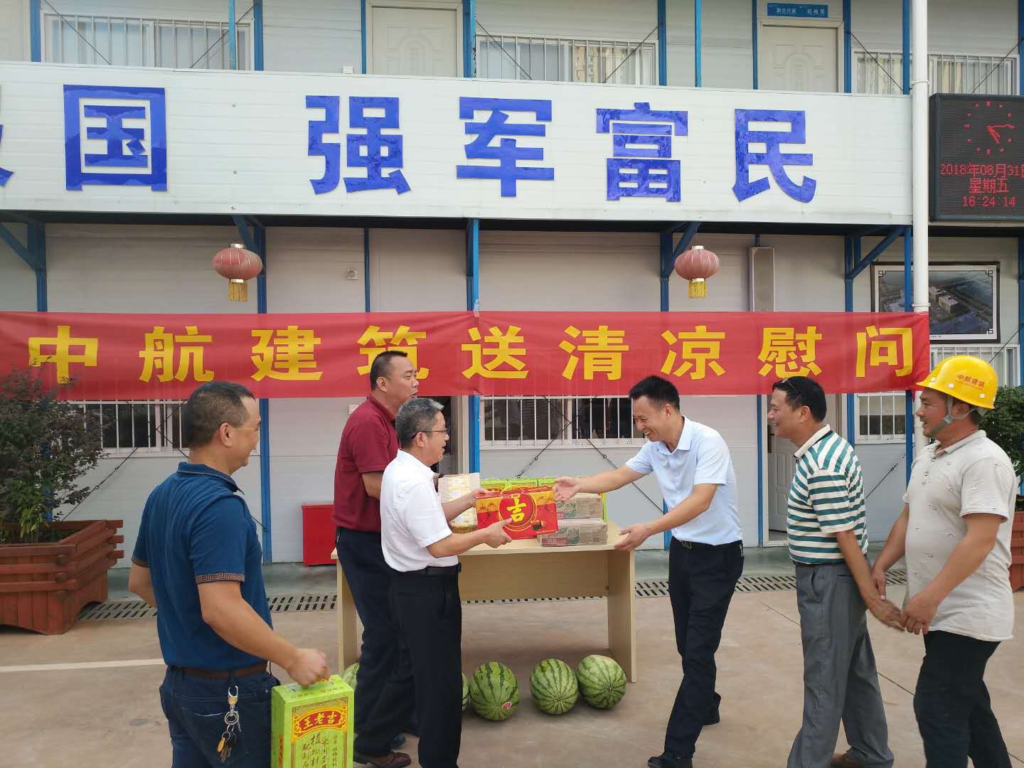 2018年8月31日,公司工會(huì)主席楊意紅赴江西南昌九龍湖項(xiàng)目“送清涼”,將防暑藥品、解暑飲品以及生活必備品等物資,送到了頂著烈日工作的建筑工人及現(xiàn)場(chǎng)管理人員的手中,給一線的建設(shè)者們送上了公司的慰問(wèn)和關(guān)懷。