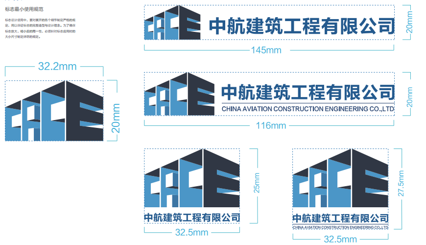 Logo造型以字母CACE為基礎(chǔ)元素。Logo采用標(biāo)準(zhǔn)的“黃金比例”進行分組排布,彰顯美感。黃金比例在眾多建筑中均有運用,造就了一系列經(jīng)典的優(yōu)美的傳世名作,例如帕特農(nóng)神廟。此處借用黃金比例的優(yōu)美造型和傳世悠久的意義,寓意企業(yè)能在未來,一枝獨秀,長遠發(fā)展,讓未來更加美好的企業(yè)愿景。整體造型以方正的建筑為藍本,進行變化延伸,符合企業(yè)的業(yè)務(wù)范疇,Logo的每一根線條,遵循標(biāo)準(zhǔn)的透視規(guī)律,突出企業(yè)的穩(wěn)重形象以及一絲不茍的企業(yè)精神。