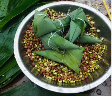 呼吸著粽香,耳旁仿佛回蕩著兒時的歌謠“桃兒紅,杏兒黃, 五月五,是端午;葦葉香,飄滿堂,粽葉香,包五糧;剝個粽子裹上 糖,幸福生活萬年長” 。兒時的粽子就是白白胖胖的,沾著白糖, 滿口香甜。這次準備的餡料,除了白糯米,還有臘肉、蛋黃、香腸、 紅豆、綠豆等多種口味??粗约河H手包的粽子,感覺這個端午節(jié)都 變得不一樣了。